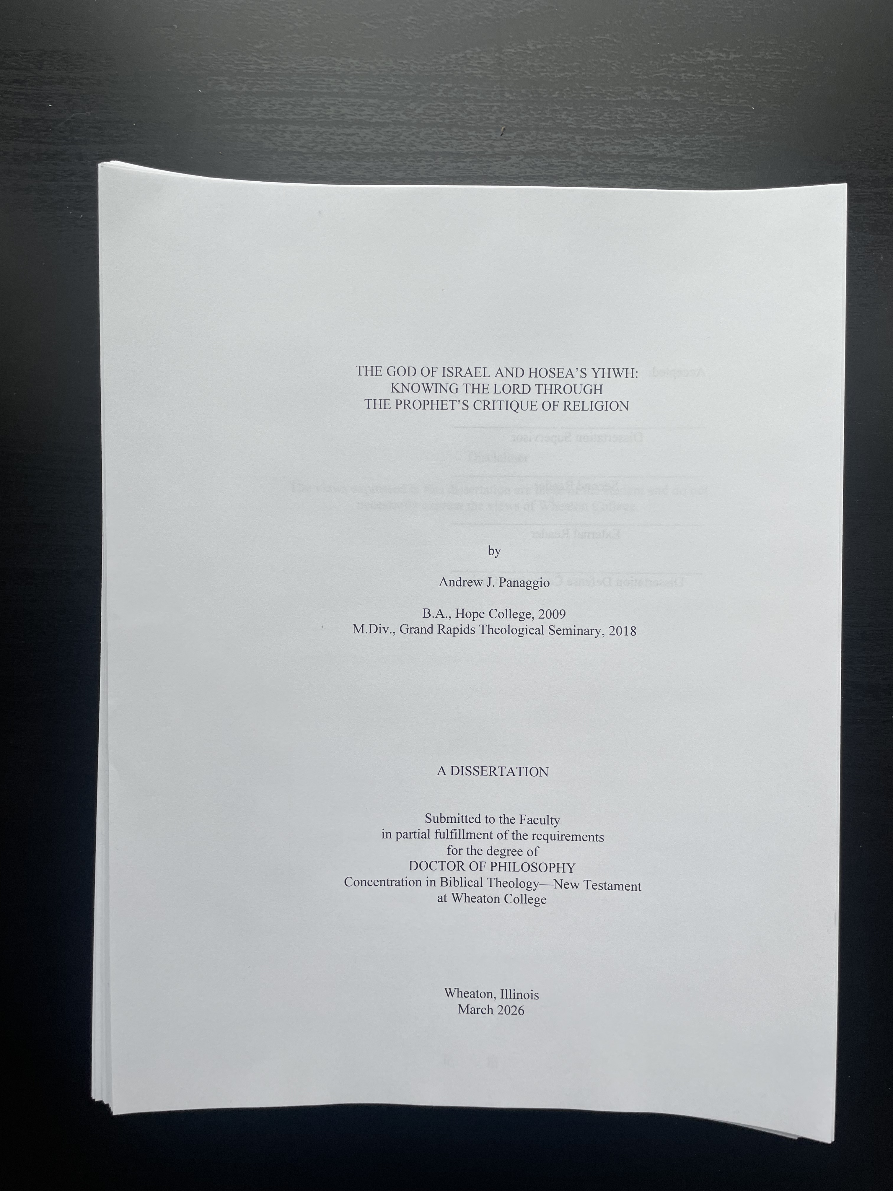 - March 20: Dissertation defense (Two Old Testament scholars and one New Testament scholar will ask me questions about my dissertation for 2 hours. I will explain and defend my work. All current PhD students and faculty will be present in the room. I’m told it’s likely I’ll pass. I hope that is true! I’m both nervous and excited for this day!)